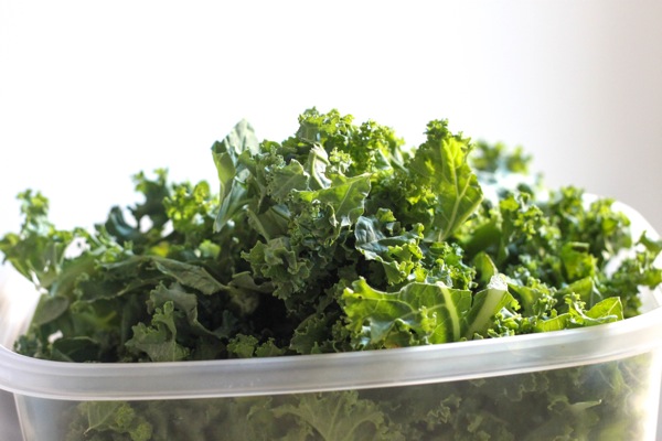 - 10 oz kale, washed, ribs removed and torn into bite-sized pieces
