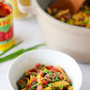 This one pot dish is perfect for weeknights or when you need a quick, versatile & customizable meal that the entire family will enjoy! It is loaded with protein, healthy fats, fiber & flavor. Bonus, leftovers are even more flavorful after the pasta has a chance to absorb all of the flavors of the herbs…