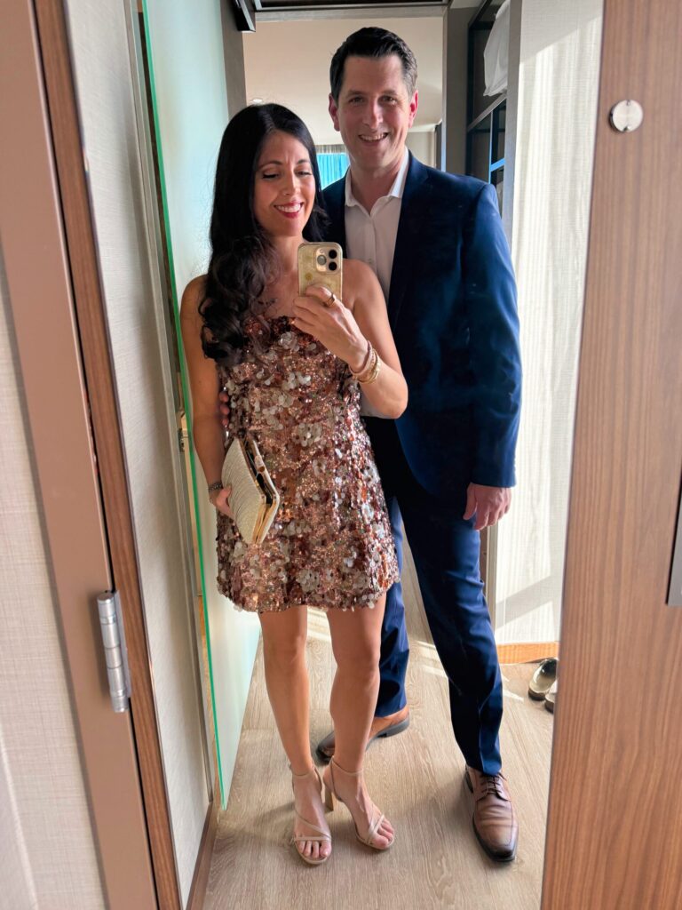 Our babysitter met us at a nearby hotel and stayed with the girls and one of P’s besties. They swam, ate dinner, and watched movies while we were at the event.