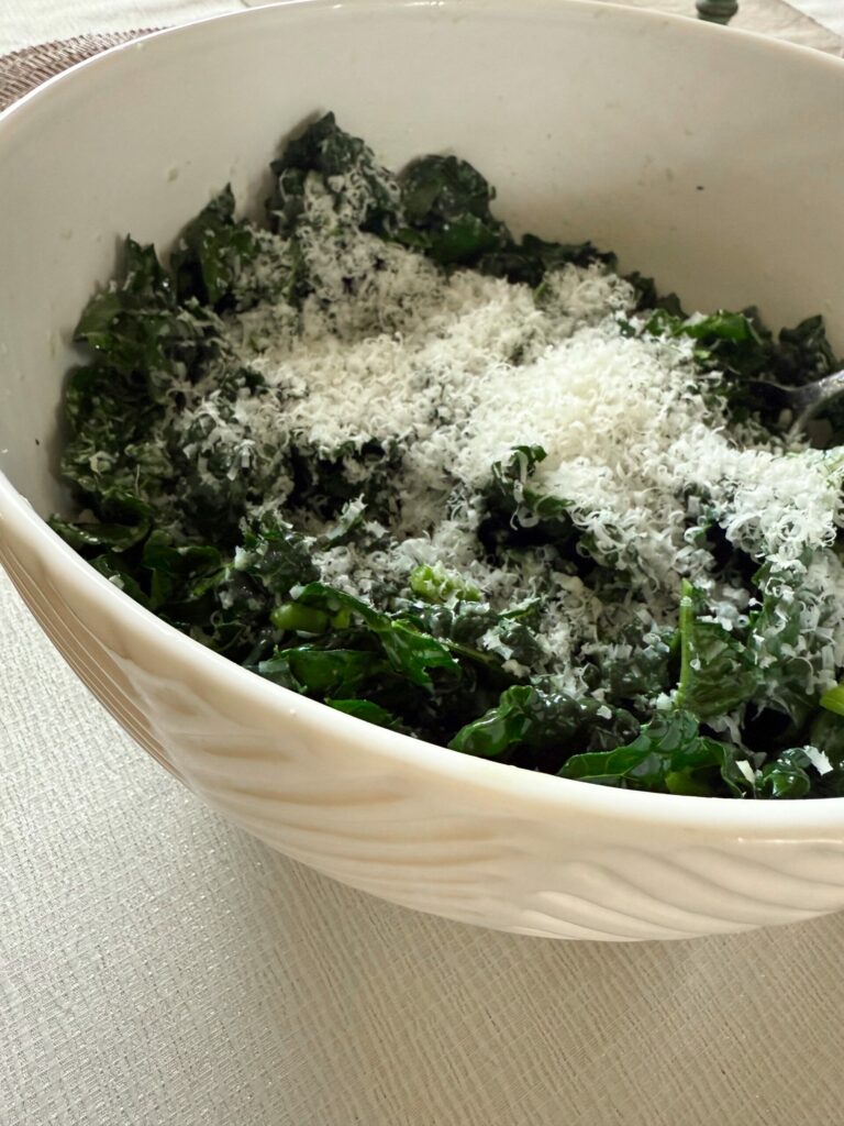 The True Food Tuscan kale salad is savory, bright, perfectly textured, and full of flavor. It hits all the right notes: bright lemon, sharp garlic, the warmth of red pepper flakes, and that nutty, umami hit from grana padano or parmigiano reggiano cheese. It’s crave-worthy and simple enough to recreate at home.