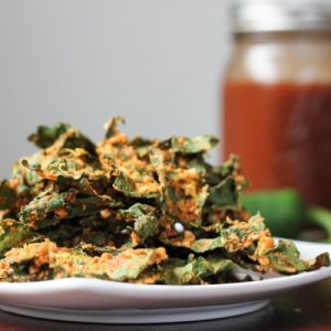 Here’s a new kale chip recipe I came up with this week: JALAPEÑO SALSA KALE CHIPS (<– it needed to be screamed)